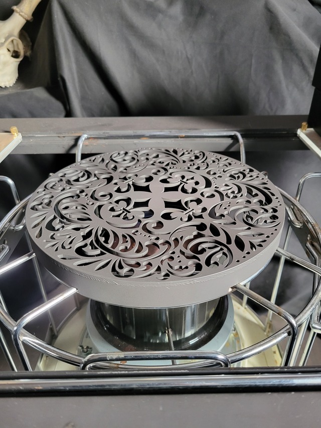 パセコストーブ専用五徳 カメラネジVer. アラベスク 耐熱黒塗装 ズレ止め付き